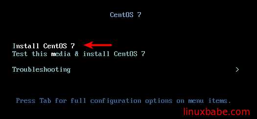 从DVD光盘或U盘启动计算机。然后选择Install CentOS 7来安装CentOS 7。