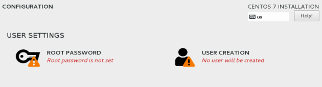 配置完所有模块后,点击开始安装(Begin Installation )来安装CentOS 7。CentOS可以在没有网络连接的情况下安装,所以你不必担心网络连接。在安装过程中,我们可以设置Root密码,创建一个标准用户,以及把这个用户设置为管理员。