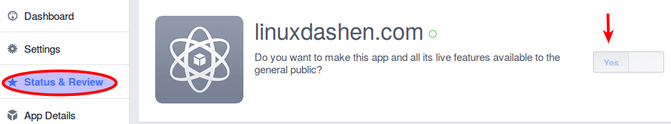 现在点击左侧面板的Status & Review标签.我们需要将No按钮切换成Yes以向外部开放.