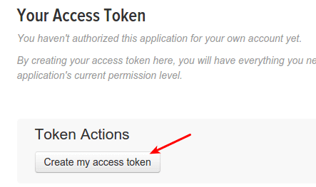 现在,点击Keys and Access Tokens标签.在这里你可以看见Twitter App的API key和API secret. 在页面的底部,点击Create my access token按钮.然后,你的access token就创建了.