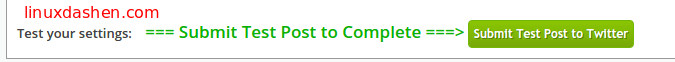 在页面底部你可以看见Sumbit Test Post to Twitter按钮,意思是提交一个测试推文到Twitter. 点击这个按钮.