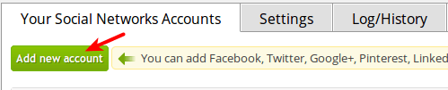 在WordPress后台,点击设置 > {SNAP} Social Networks Auto Poster. 然后点击Add new account按钮.