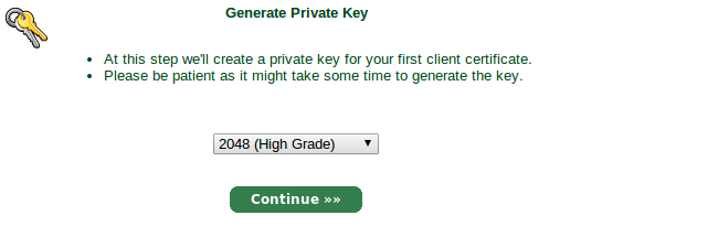 首先我们需要生成私钥。StartSSL可以为你生成一个私钥,但私钥最好是自己来生成。因为CA证书的私钥只有自己可以看,不能给任何他人看。