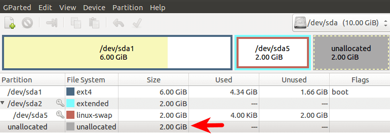 现在,你可以在Gparted里扩大root根分区.完成后关闭虚拟机,再让虚拟机从虚拟硬盘启动进入原来的guest OS,你应该可以使用新添加的空间了.