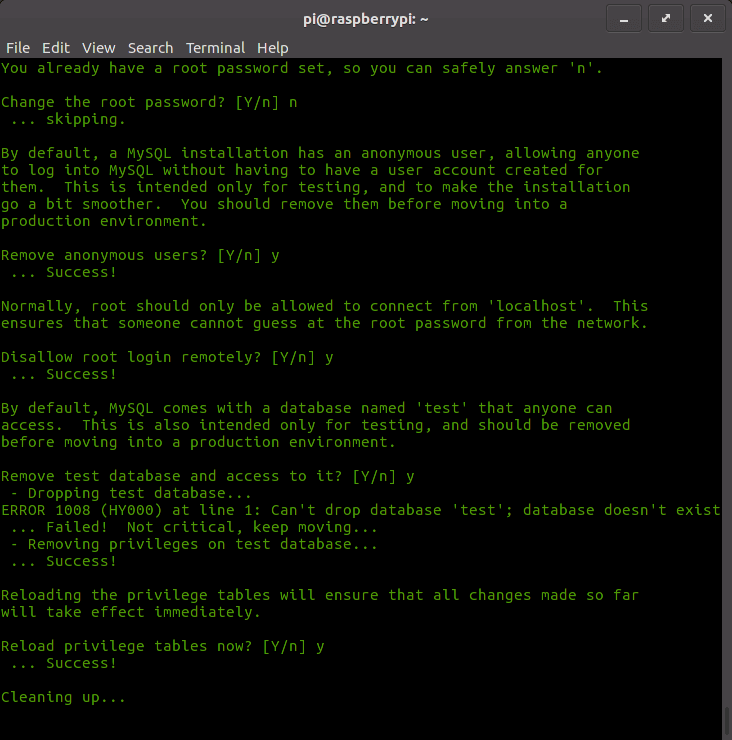 如果你不想更改root密码,那么回答N。之后的问题都可以直接按Enter来回答。