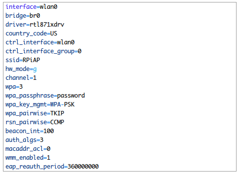 sudo vi /etc/hostapd/hostap.conf