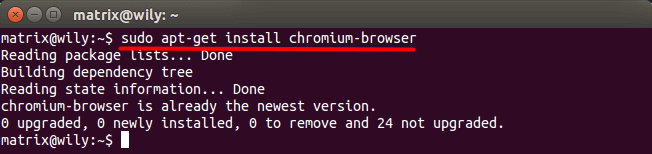 在上图中你可以看到,我的Ubuntu系统上已经安装好了Chromium浏览器.