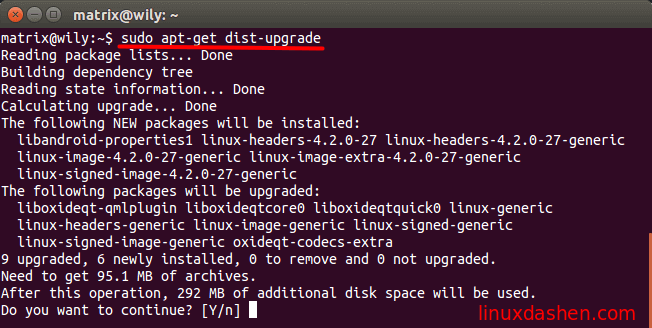 这条命令可能会让很多人感到困惑.在Debian系统上,你用这条命令升级系统版本,比如从Debian 7升级到Debian 8.但是在Ubuntu系统上,这条命令只会升级Linux内核以及之前没有被升级的软件包.升级Ubuntu的版本你需要用到do-release-upgrade命令.