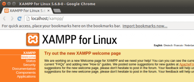 在之前的一篇文章中,我们向大家展示了如何在ubuntu系统上安装XAMPP服务器环境。今天我们以ubuntu为例,在XAMPP的基础上安装本地WordPress内容管理系统。在本地计算机上安装WordPress对于开发WordPress主题和插件来说是必不可少的。在速度上,本地WordPress比在线WordPress快很多。而且本地站点提供了比在线站点更加安全的测试环境。 WordPress不是一个独立的应用程序,它必须要有网页服务器、数据库服务器和PHP的支持。在安装本地WordPress之前,请先安装好XAMPP服务器环境。如果你已经安装好了XAMPP,那么请继续阅读这篇文章。 为WordPress建立一个MySQL数据库 在安装WordPress之前,我们需要一个数据库。在浏览器地址栏输入http://localhost/xampp,然后在网页的左侧点击phpMyAdmin。 在弹出来的phpMyAdmin管理界面的左上方点击”Database”,系统将提示你新建一个数据库。我把数据库命名为”WP”,然后点击“Create”。 下载并安装WordPress 点此链接下载最新版的WordPress. 下载完后,我们需要将WordPress解压到/opt/lampp/htdocs目录下。输入下图中的命令。如果你不能在htdocs目录下新建文件,那么请看这篇文章: 解决htdocs目录的权限问题。 然后在/opt/lampp/htdocs/wordpress目录下找到wp-config-sample.php文件,将它重命名为wp-config.php。打开wp-config.php文件,找到如下几行字。将database_name_here替换为新建的数据库名称,我的数据库名称是wp。将username_here替换为root,将password_here这几个字删除。保存文件。 在浏览器地址栏输入http://localhost/wordpress。在弹出的页面中填入信息,我们就成功地在本地Linux系统安装好了WordPress!