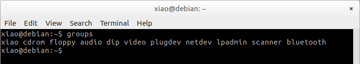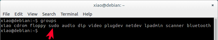 现在你需要登出系统,然后重新登录。再打开一个终端窗口,运行groups命令。你会看见用户已经加入到了sudo组了。