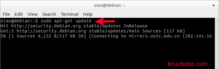 你可以看见,用户xiao不在sudo组中。为了将用户添加到sudo组中,首先用su命令登录为root用户。