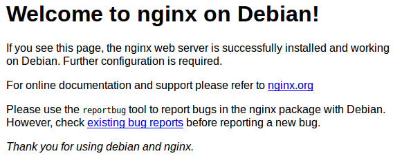 在浏览器地址栏中输入Debian服务器的IP, 回车。如果你看到下面的文字,说明Nginx正确地安装好了。
