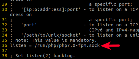 fastcgi_pass unix:/run/php/php7.0-fpm.sock;