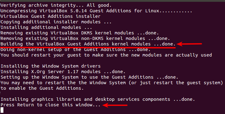 然后输入ubuntu虚拟机的用户密码.它会开始编译并安装virtualbox增强功能.