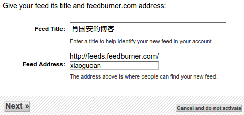 给新的Feed起个标题,然后指定一个新的Feed URL.