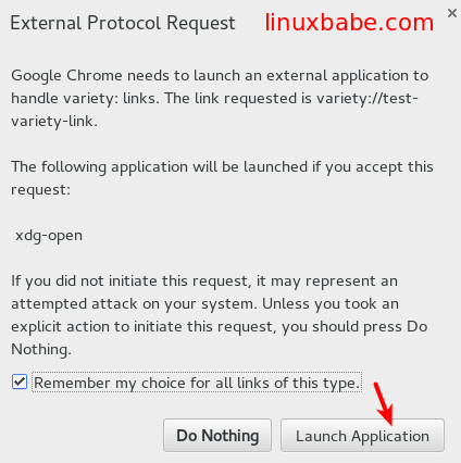 如果你的默认浏览器是Chrome/Chromium,那么它会让你用xdg-open来打开variety://的链接.点击启动应用程序(Launch Application).