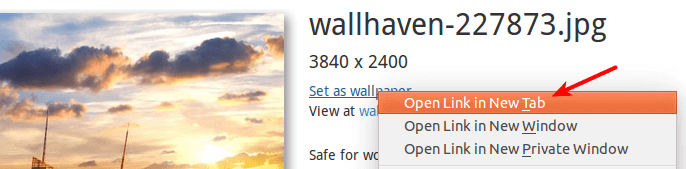 要直接在VRTY.ORG为桌面设置壁纸,只需要点击set as wallpaper这个链接,然后浏览器就会调用Variety程序来下载并设置壁纸了.如果点击链接没反应,则需要右击这个链接,然后选择在新标签页中打开.