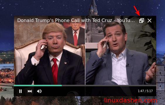 跳出网页的视频窗口可以移动到桌面的任何位置,可以调整大小,并且这个窗口总是在最前面。在小视频窗口的右上角也有一个按钮,点击这个按钮,小视频窗口就回到原网页中了。