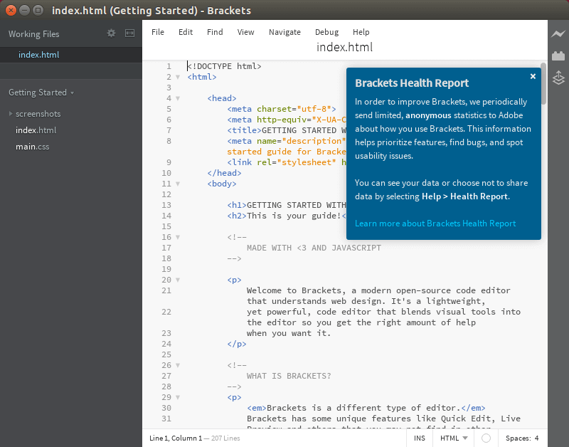 sudo add-apt-repository ppa:webupd8team/brackets sudo apt-get update sudo apt-get install brackets