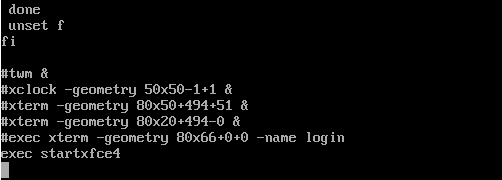 在启动xfce桌面环境之前,我们要复制xinitrc这个文件到home目录下,然后编辑。