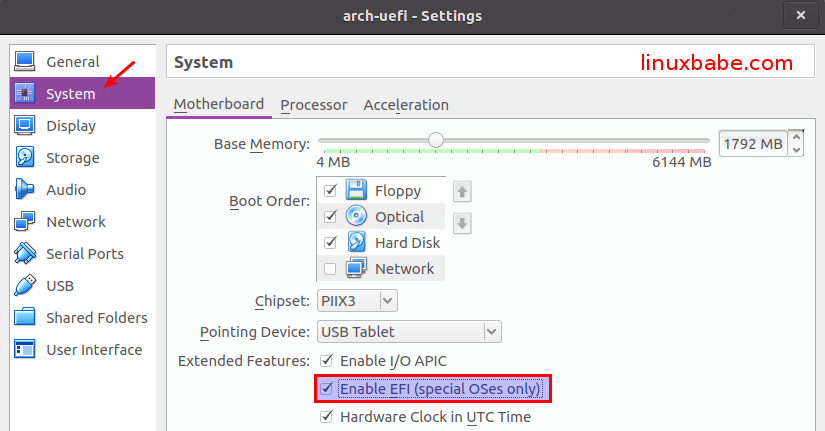 Virtualbox下开启UEFI固件安装Arch Linux虚拟机