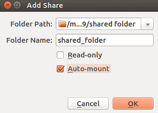 你可以勾选只读(Read-only),这样客户机对宿主机文件系统中的共享文件夹只有读的权限,但没有写的权限.勾选自动挂载(Auto-mount),以让客户机启动时自动挂载共享文件夹.然后,点击确定(OK)按钮.